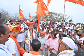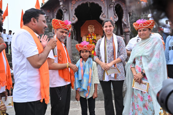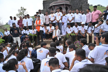 संगमनेरहून निघालेल्या सर्व सहभागींचा प्रवास गडाच्या पायथ्याशी पोहोचल्यावर एक वेगळाच अनुभव देणारा ठरला. तो अभेद्य किल्ला, डोंगराळ परिसर आणि निसर्गसौंदर्य पाहून सर्वजण थक्क झाले. गड सर करताना प्रत्येकाच्या मनात इतिहासाच्या असंख्य पाऊलखुणा जाग्या झाल्या. गड सर केल्यानंतर सर्वप्रथम छत्रपती शिवाजी महाराजांना अभिवादन करण्यात आले. त्यानंतर खा. निलेश लंके यांच्या उपस्थितीत आई जिजाऊंना वंदन करण्यात आलं. या प्रसंगी सर्व सहभागी मावळ्यांनी गडकिल्ल्यांच्या जतनासाठी शपथ घेतली.